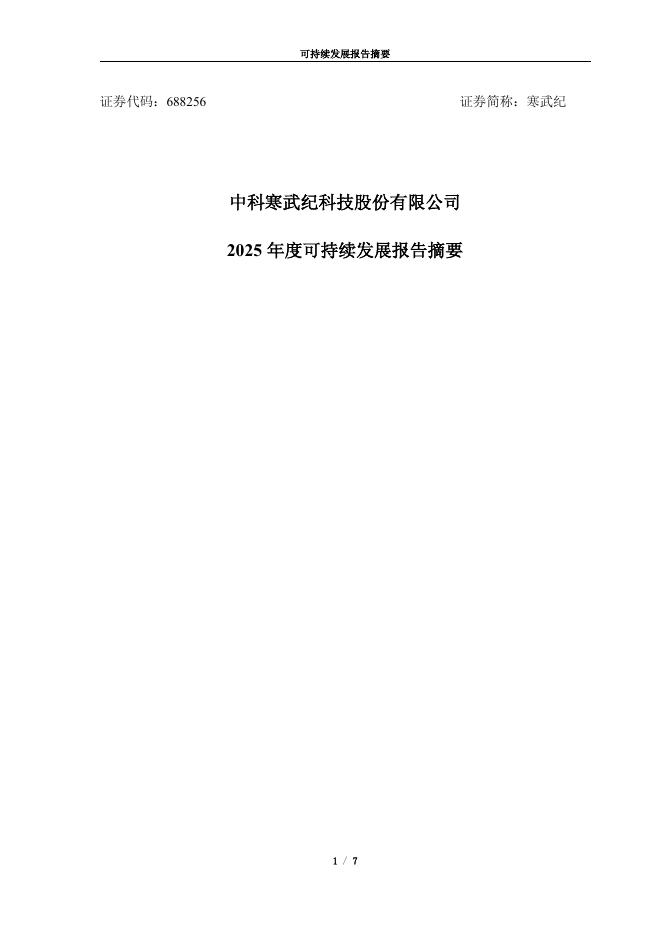 688256-寒武纪:2025年度可持续发展报告摘要.pdf