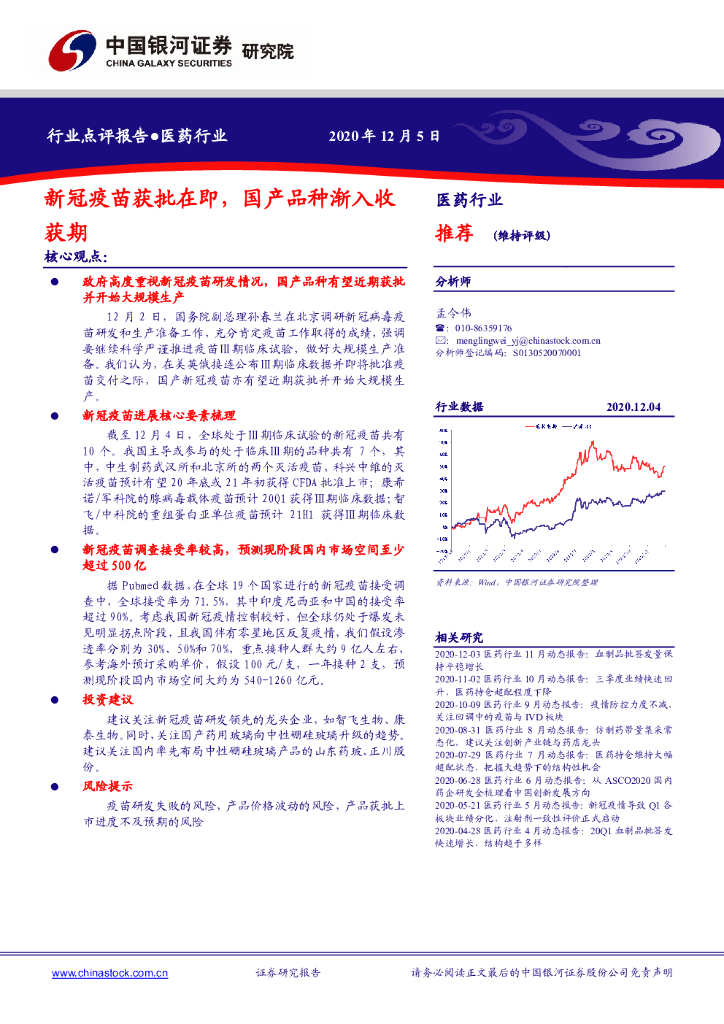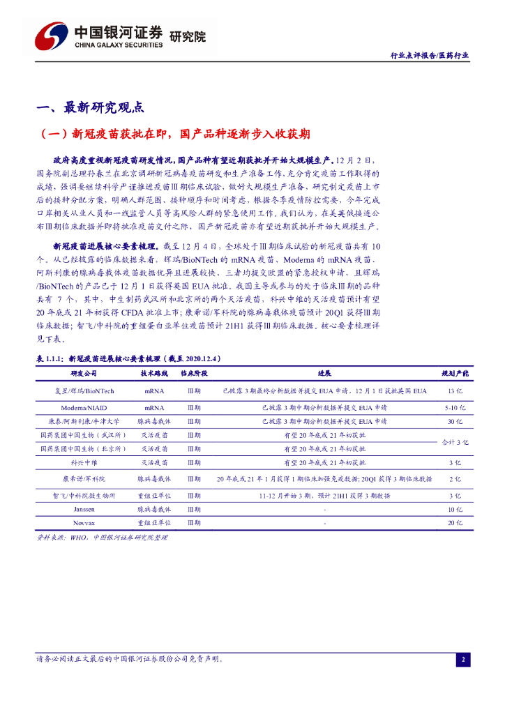 中国银河:医药行业点评报告:新冠疫苗获批在即,国产品种渐入收获期.pdf