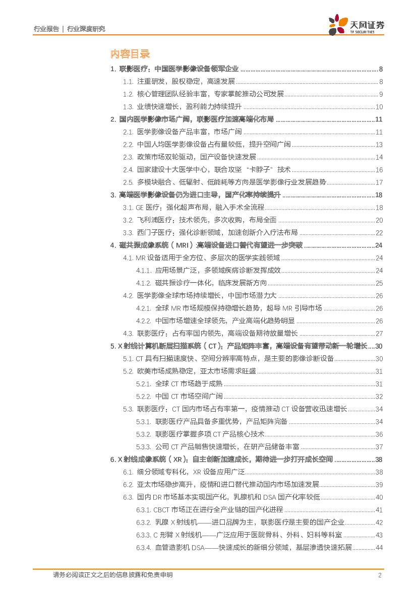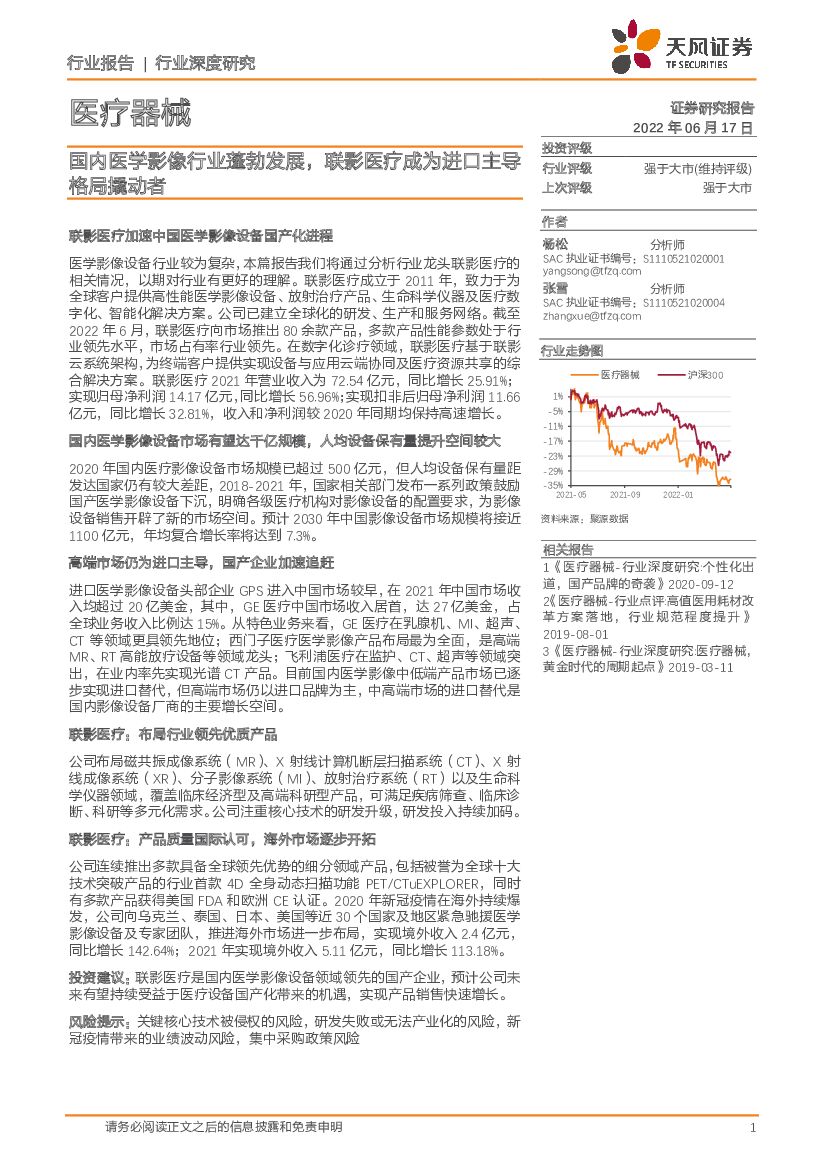 天风证券:医疗器械行业深度研究:国内医学影像行业蓬勃发展,联影医疗成为进口主导格局撬动者.pdf