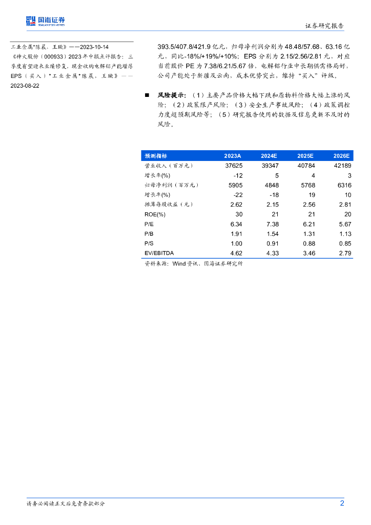 国海证券:神火股份(000933)-2024年中报点评:电解铝量价齐升,煤炭产量下降影响业绩.pdf