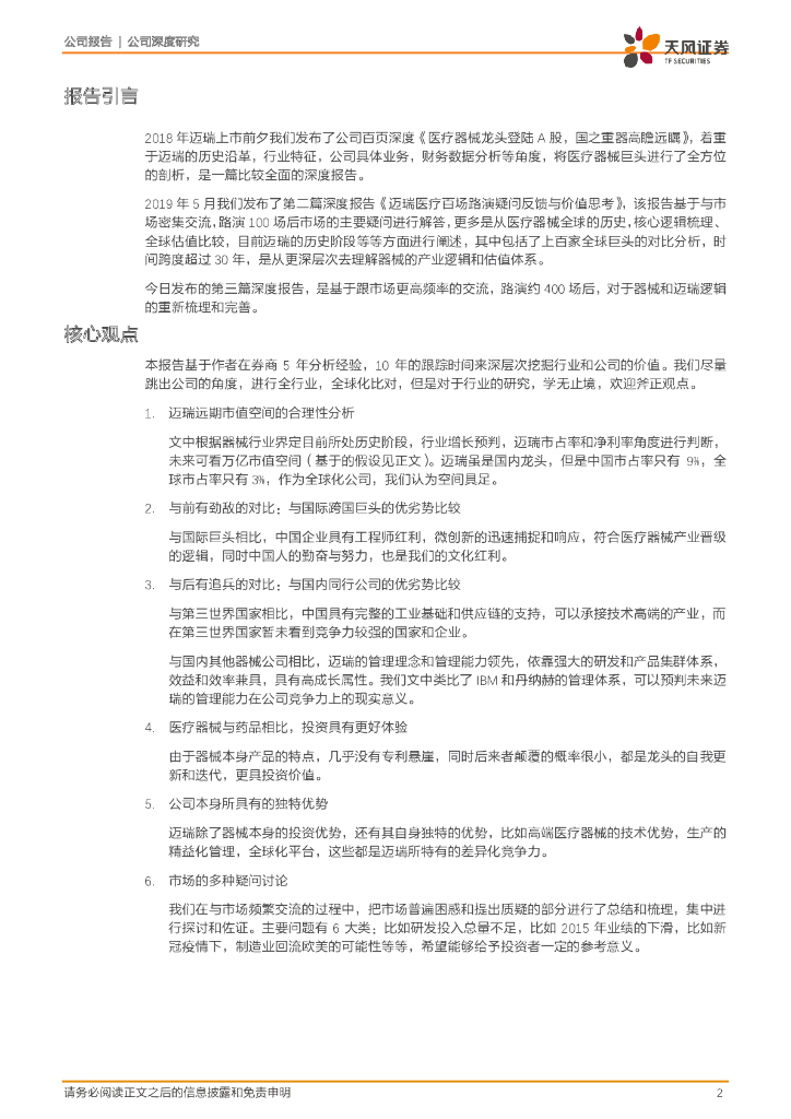 天风证券:迈瑞医疗深度价值再次探讨(三):中国高端医疗装备初露锋芒,从追梦人到领路人.pdf