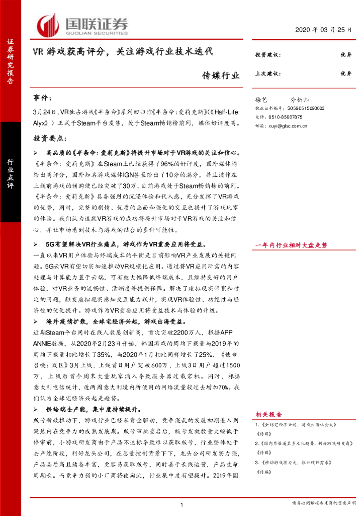 国联证券:传媒行业:VR游戏获高评分,关注游戏行业技术迭代.pdf