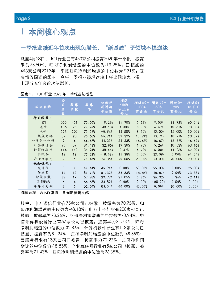 首创证券:ICT行业周报:一季报业绩近年首次出现负增长,“新基建”子领域不惧逆缘.pdf