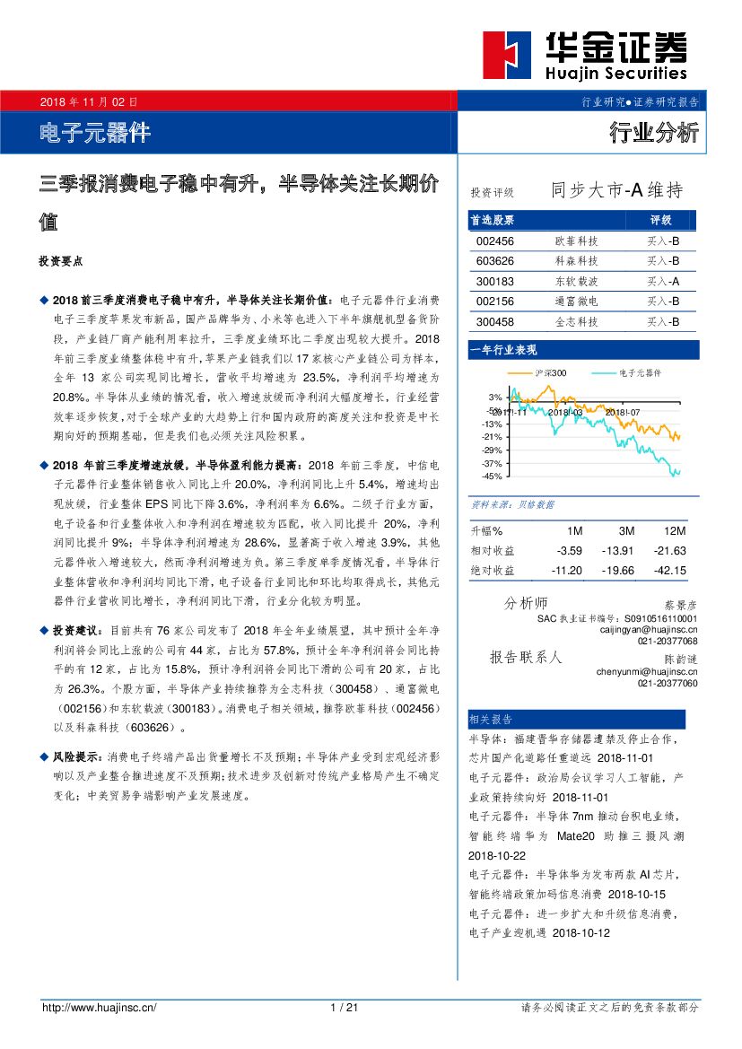 华金证券:电子元器件行业分析:三季报消费电子稳中有升,半导体关注长期价值.pdf
