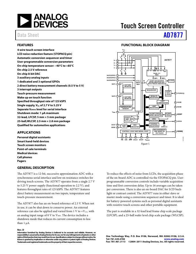 ANALOG DEVICES AD7877 英文产品 数据手册 Rev D.pdf