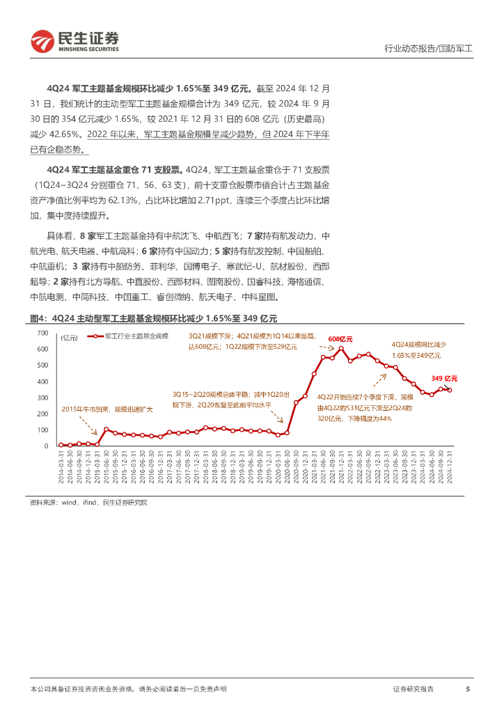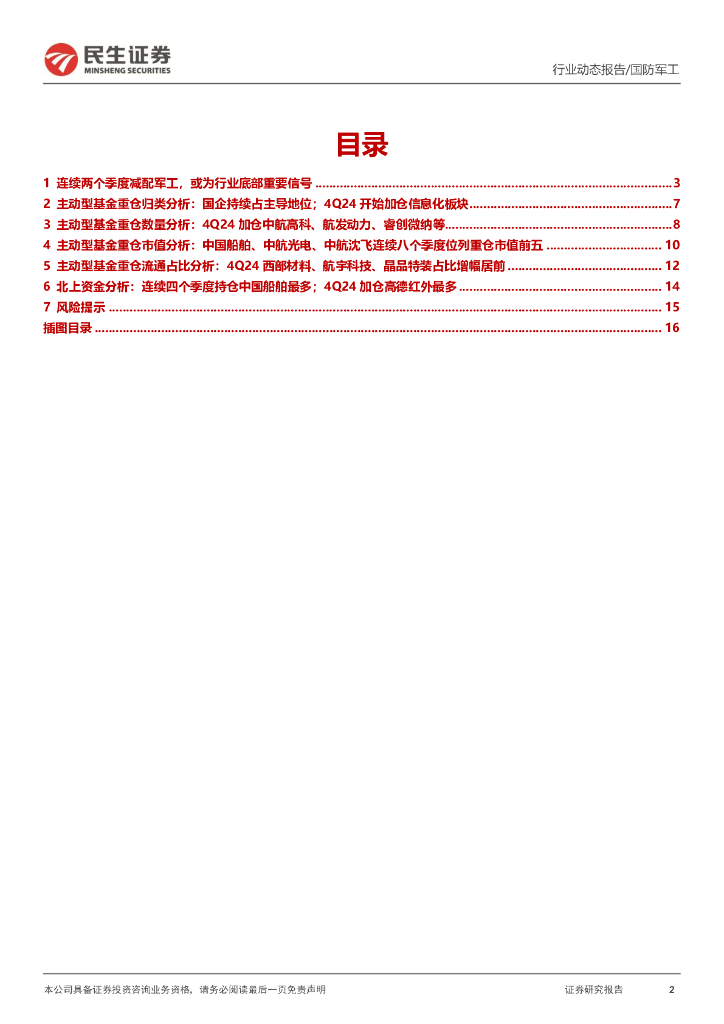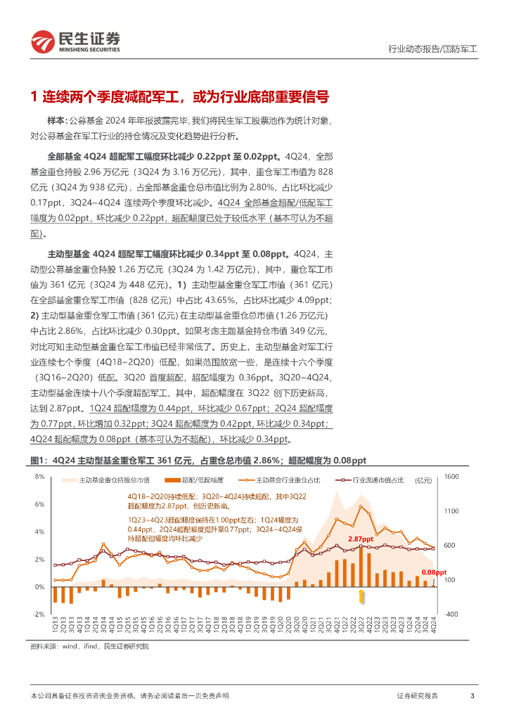 民生证券:军工行业2024年四季度公募基金持仓分析:机构减配至历史低位;或为行业底部重要信号.pdf