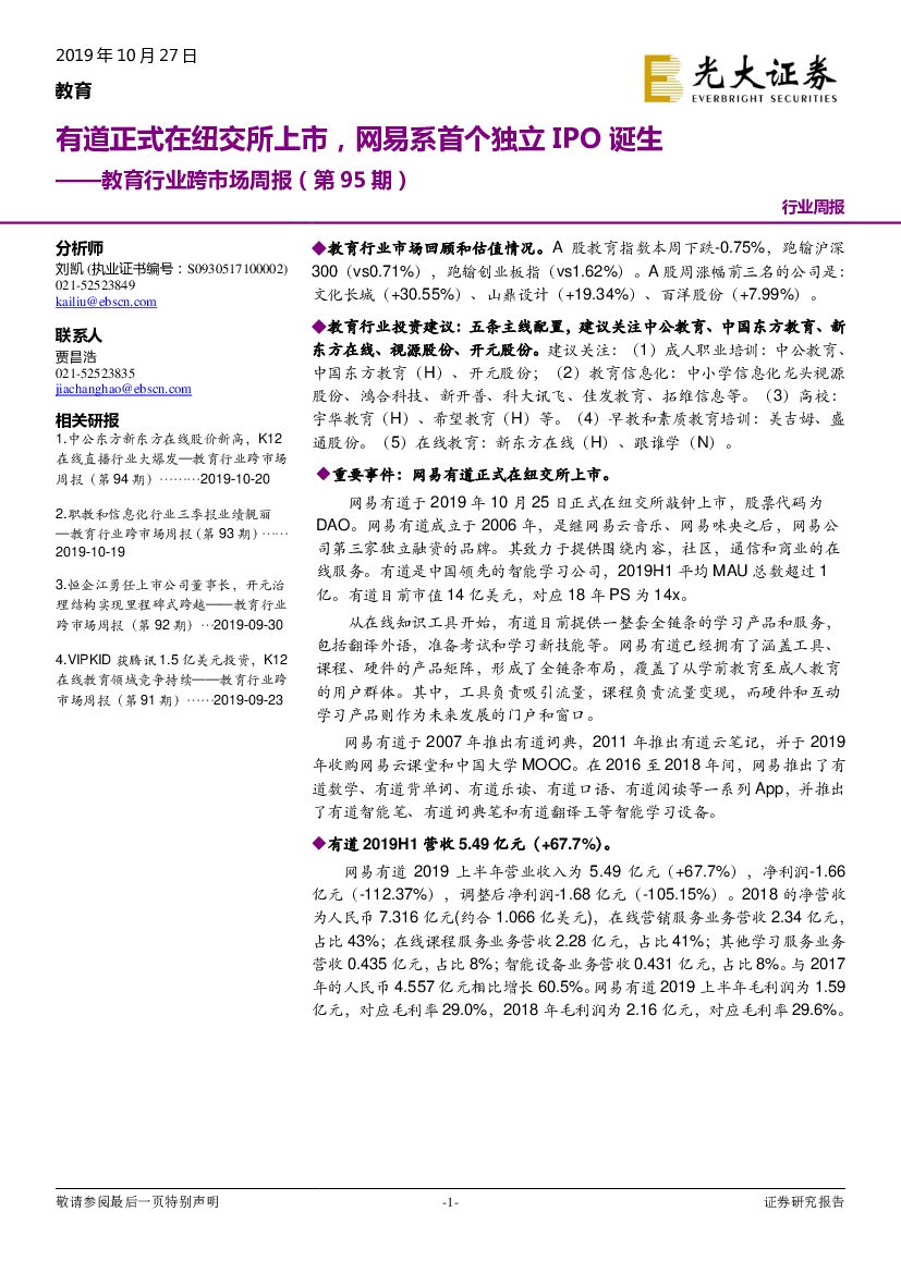 光大证券:教育行业跨市场周报(第95期):有道正式在纽交所上市,网易系首个独立IPO诞生.pdf