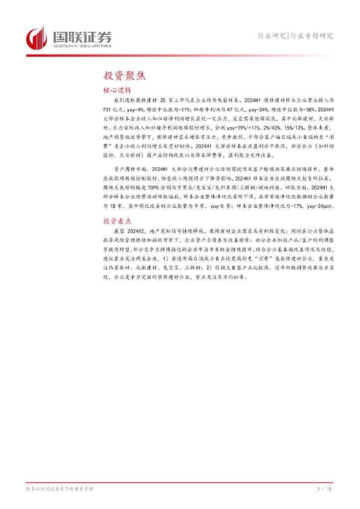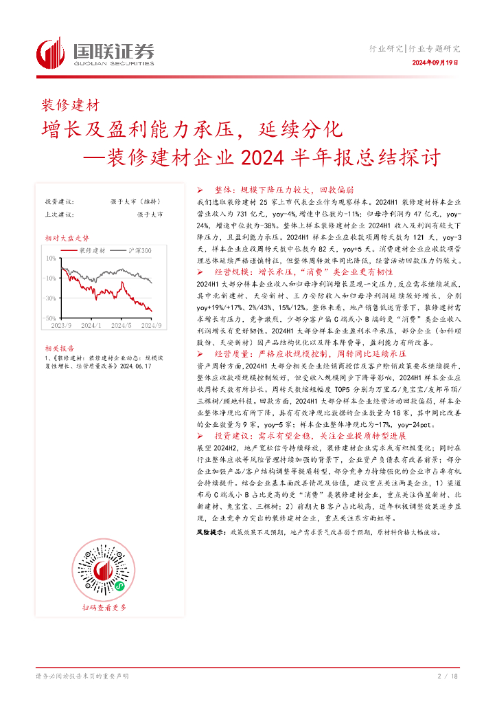 国联证券:装修建材企业2024半年报总结探讨:增长及盈利能力承压,延续分化.pdf