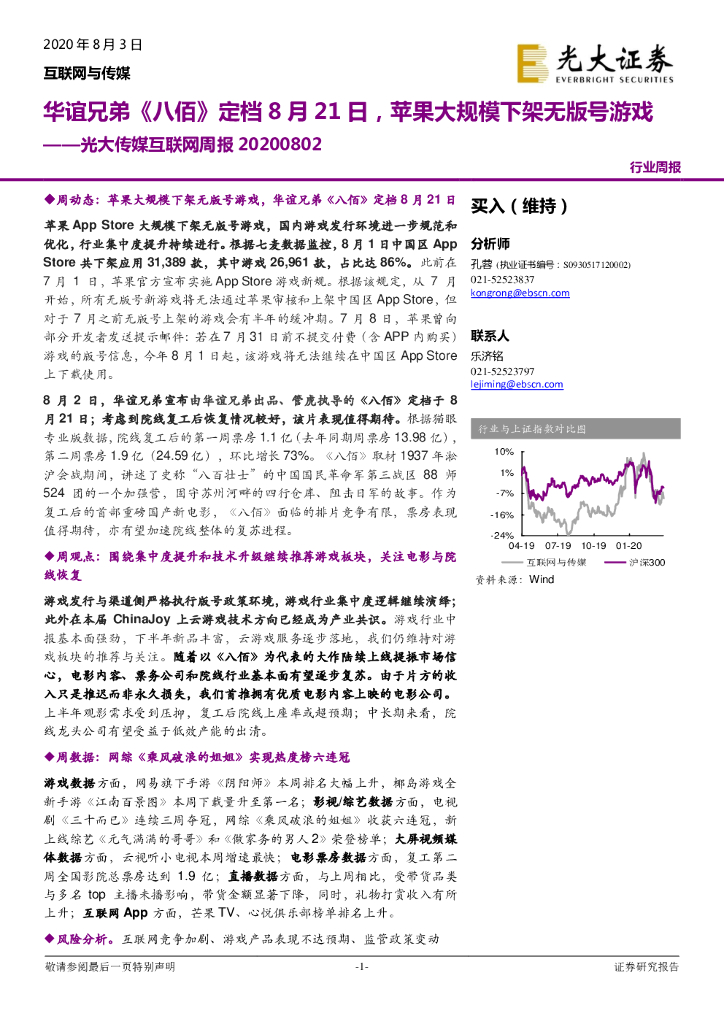 光大证券:光大传媒互联网周报:华谊兄弟《八佰》定档8月21日,苹果大规模下架无版号游戏.pdf