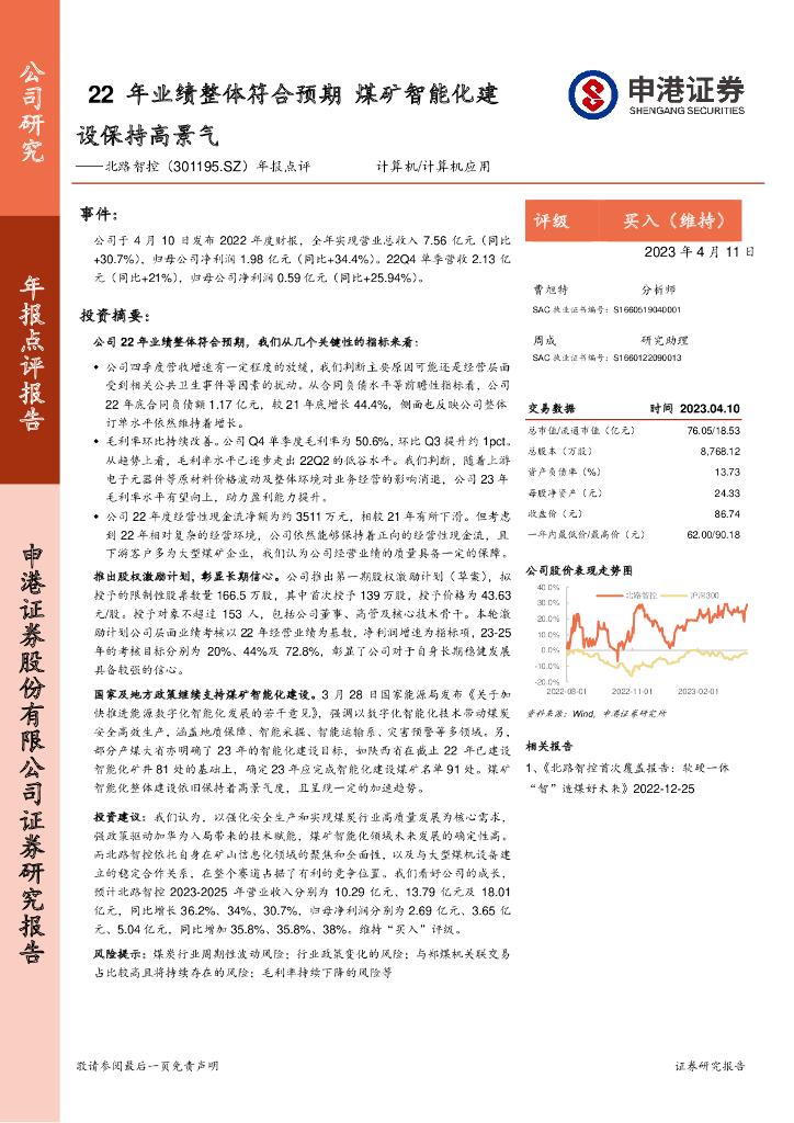 申港证券:北路智控(301195)-年报点评:22年业绩整体符合预期 煤矿智能化建设保持高景气.pdf