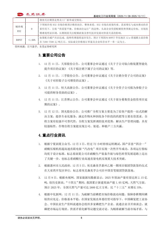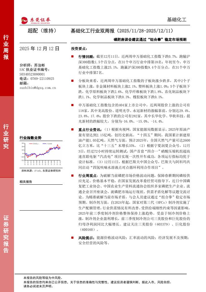 东莞证券:基础化工行业双周报:磷肥座谈会建议通过“组合拳”稳定市场预期.pdf