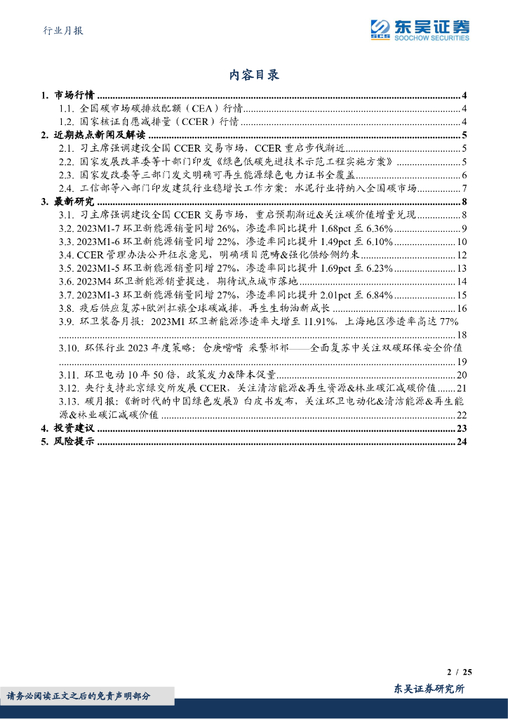 东吴证券:环保行业月报:习主席强调建设CCER交易市场&绿色低碳先进技术示范&绿证核发全覆盖.pdf