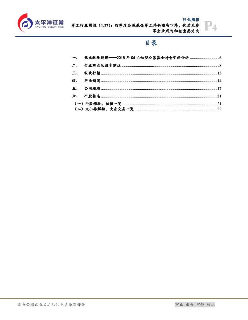 太平洋证券:军工行业周报:四季度公募基金军工持仓略降,优质民参军企业成为加仓重要方向.pdf