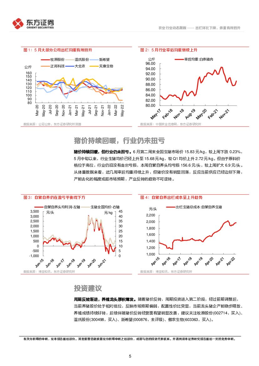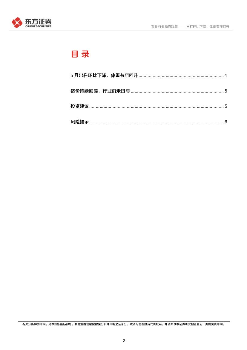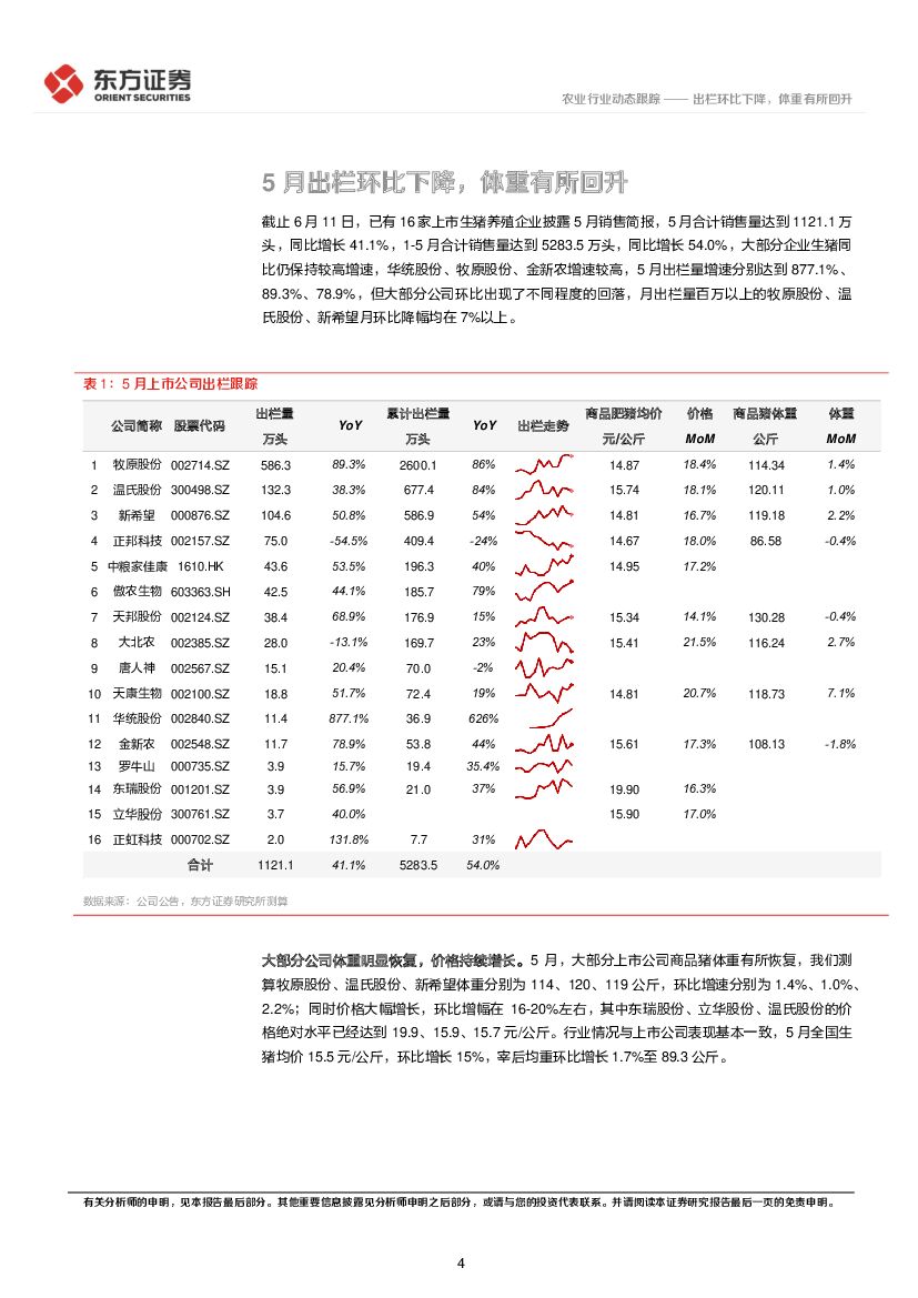 东方证券:5月生猪销售情况跟踪:出栏环比下降,体重有所回升.pdf
