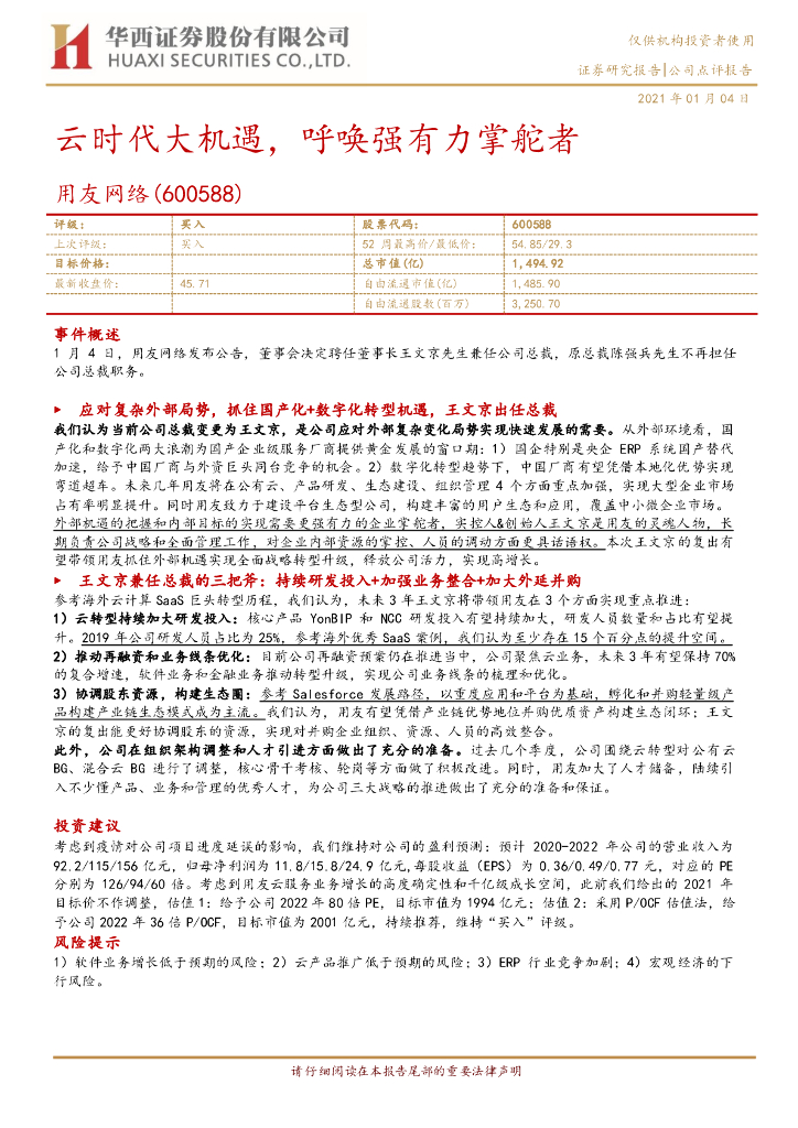华西证券:用友网络(600588)-云时代大机遇,呼唤强有力掌舵者.pdf
