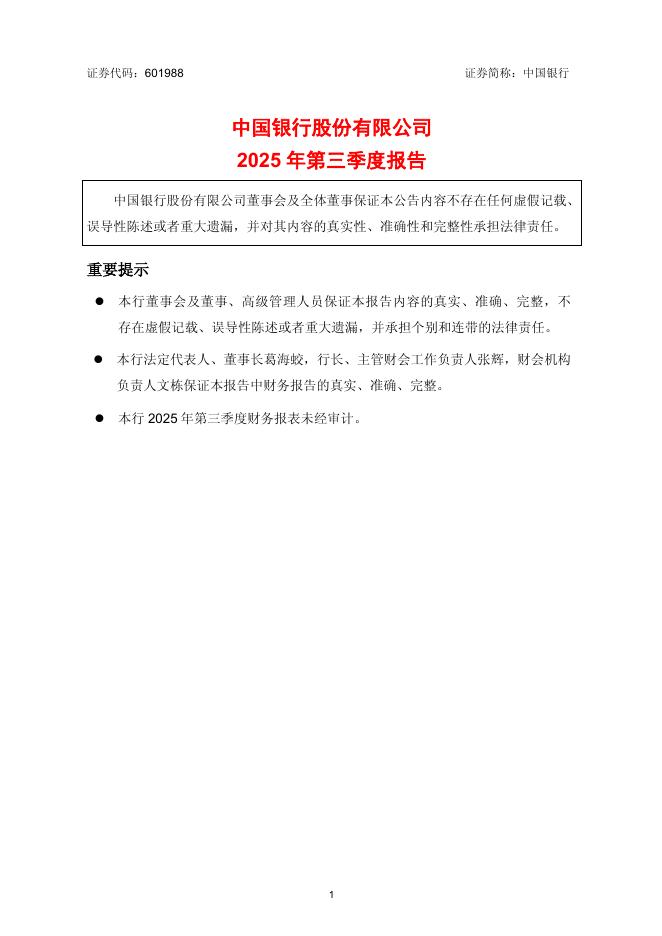 601988-中国银行:中国银行股份有限公司2025年第三季度报告.pdf