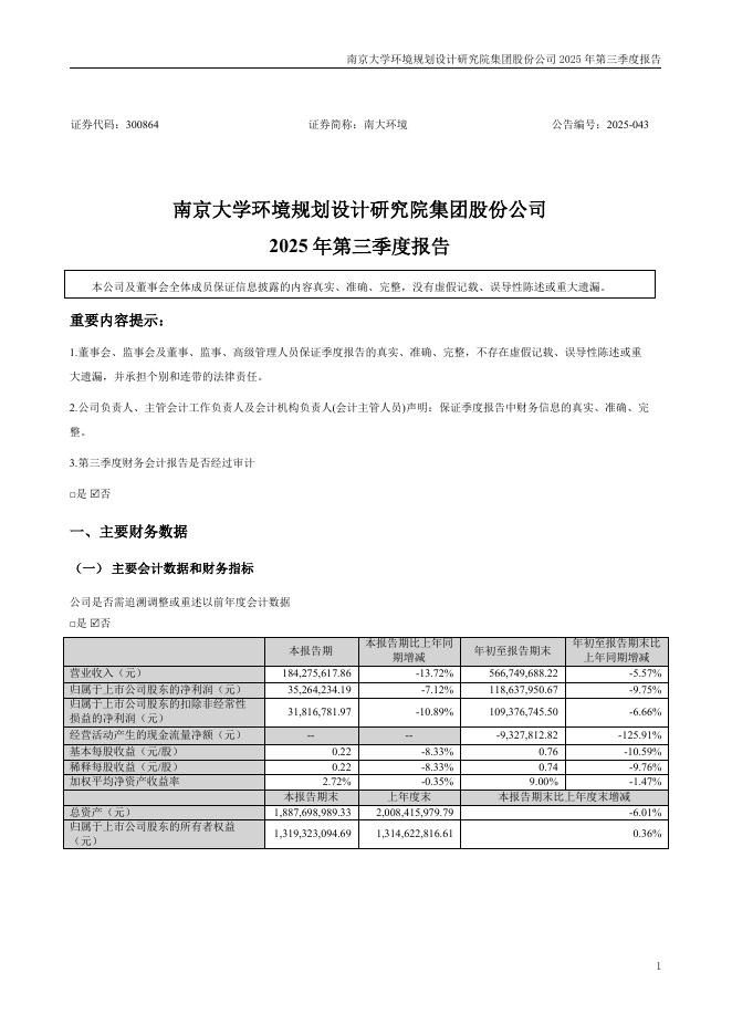 300864-南大环境:2025年三季度报告.pdf
