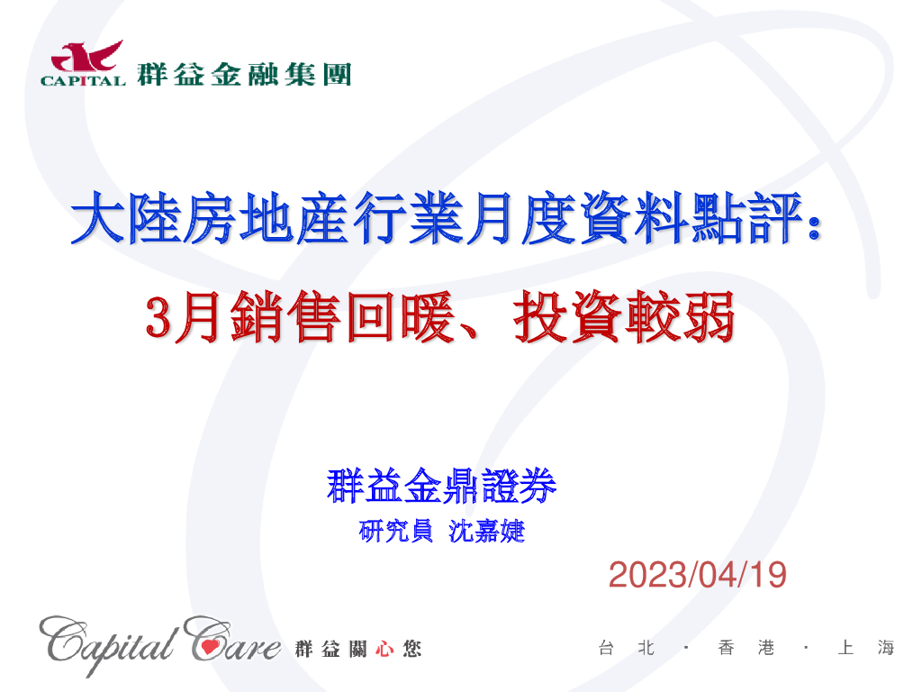 群益证券:大陆房地产行业月度数据点评:3月销售回暖、投资较弱.pdf