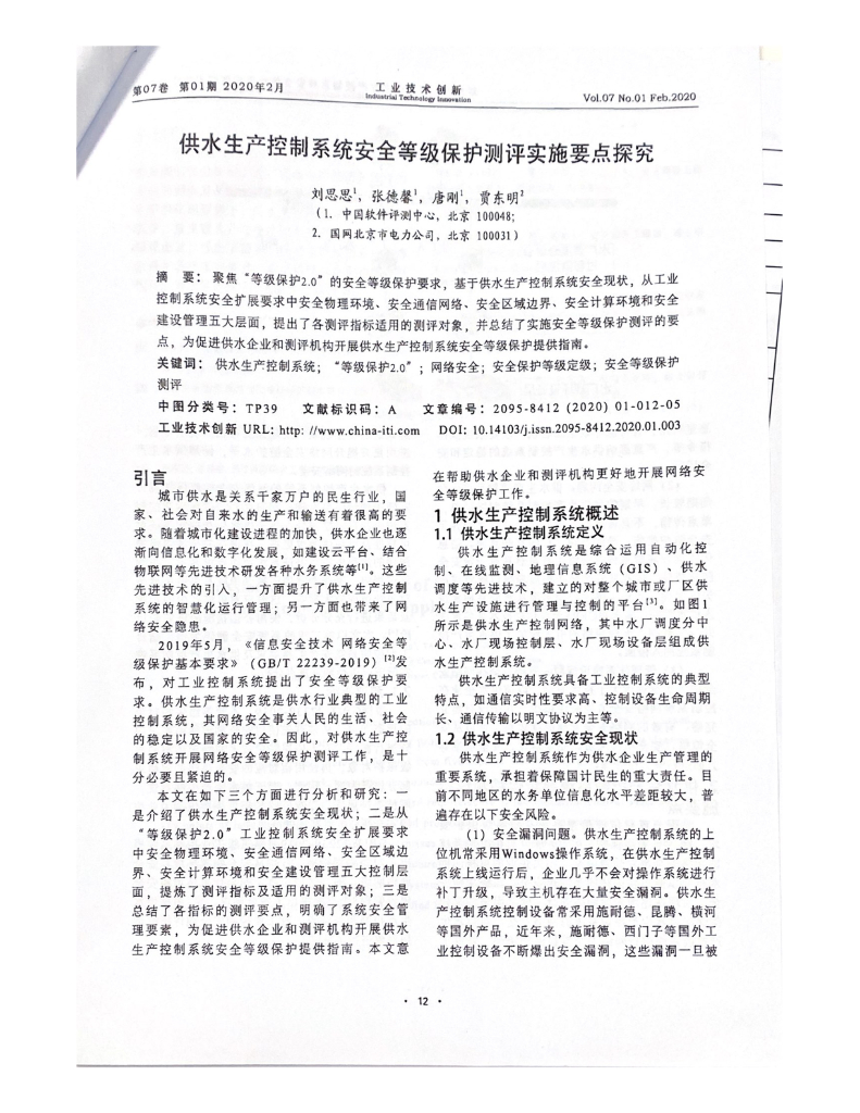 供水生产控制系统安全等级保护测评实施要点探究.pdf