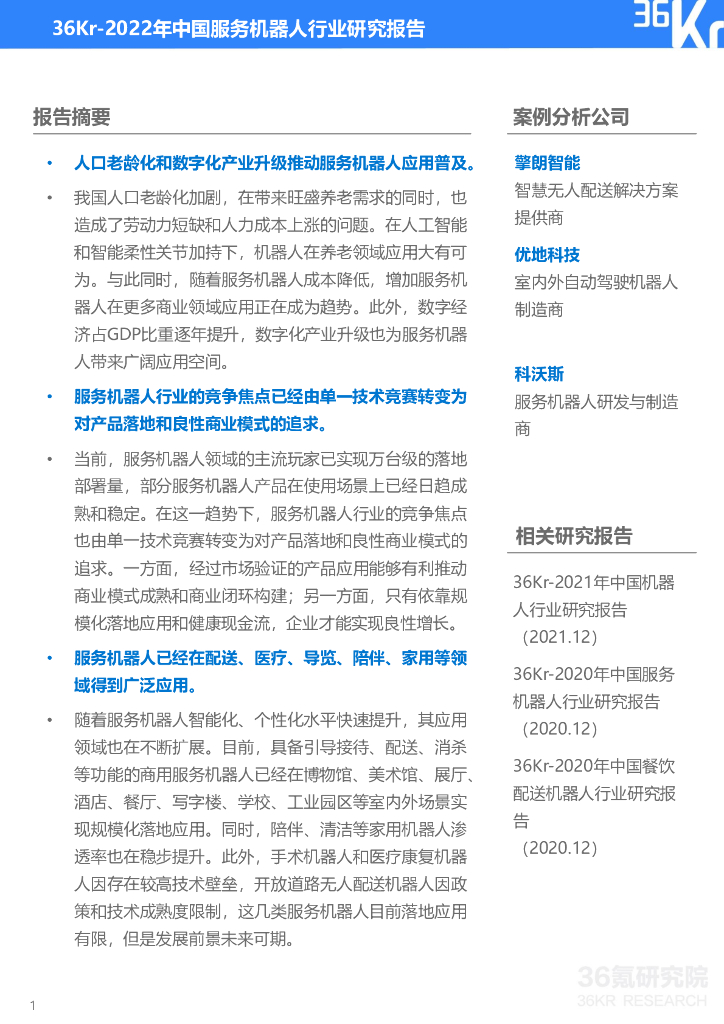 36氪:2022年中国服务机器人行业研究报告.pdf