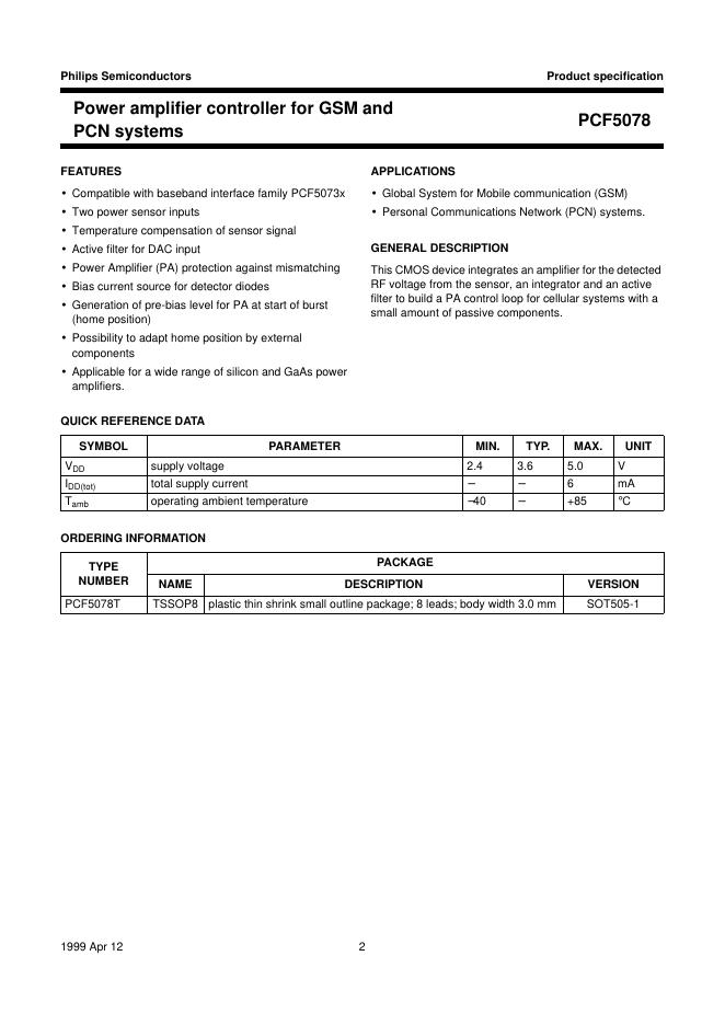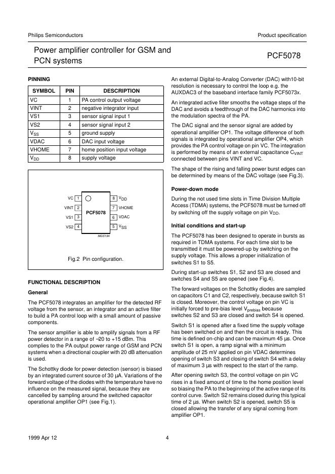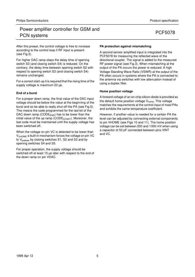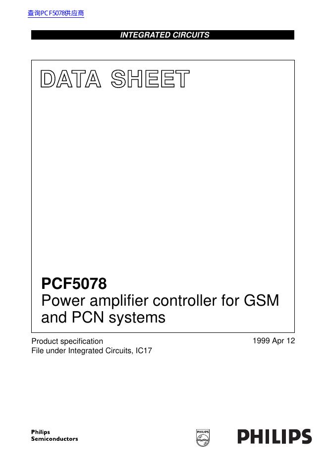 PHILIPS PCF5078 Power amplifier controller for GSM and PCN systems 数据手册.pdf