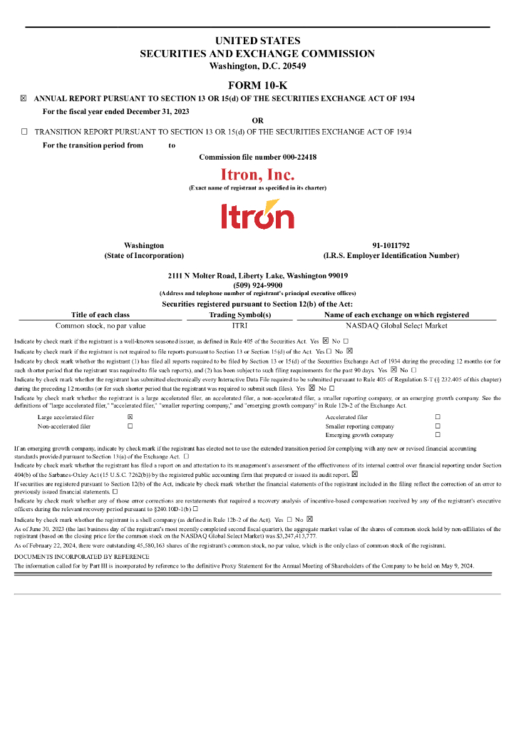 Itron, Inc.(ITRI)2023财年年度报告(英文版).pdf