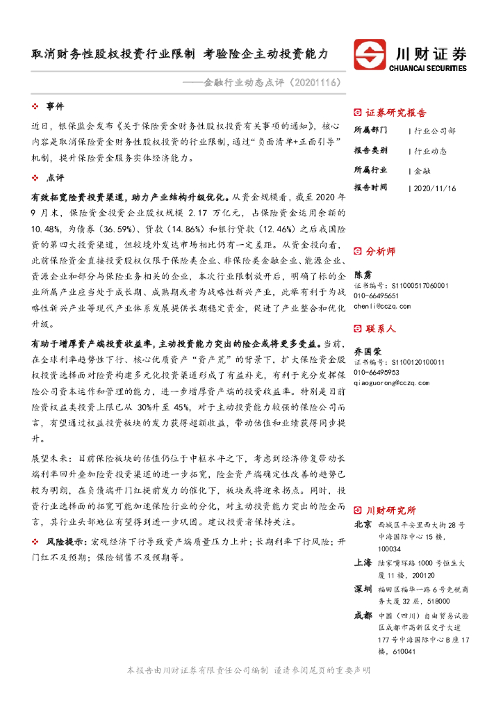川财证券:金融行业动态点评:取消财务性股权投资行业限制 考验险企主动投资能力.pdf