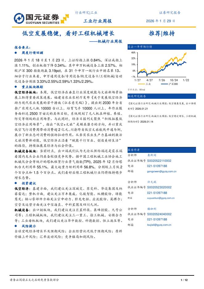 国元证券:机械行业周报:低空发展稳健,看好工程机械增长.pdf
