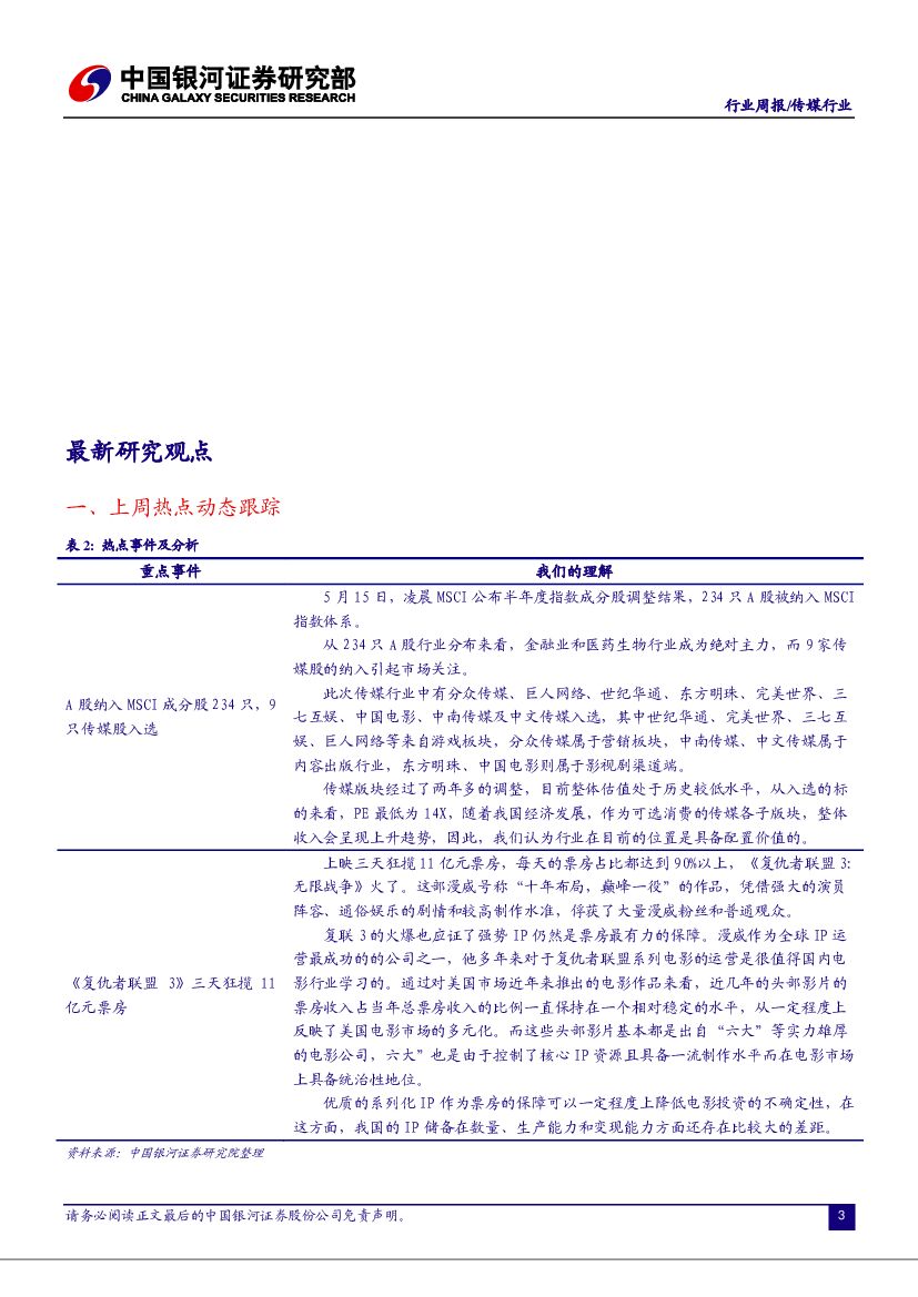 中国银河:传媒行业周报:A股纳入MSCI成分股234只,9只传媒股入选.pdf