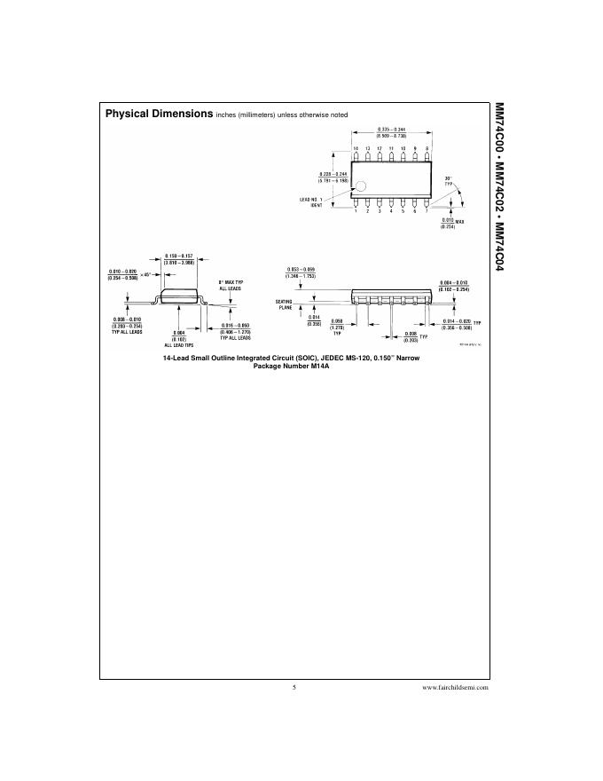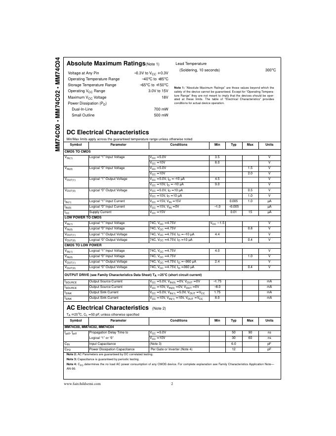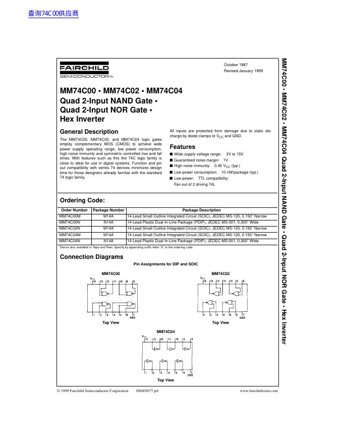 FAIRCHILD MM74C00 • MM74C02 • MM74C04 Quad 2-Input NAND Gate • Quad 2-Input NOR Gate • Hex Inverter 数据手册.pdf