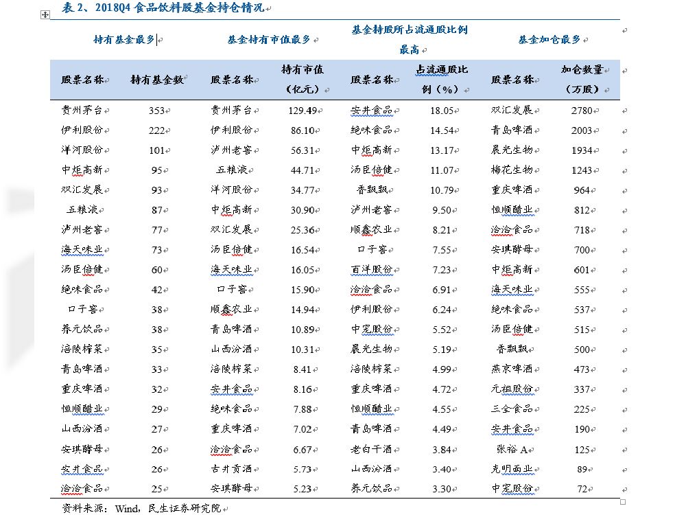 民生证券:公募基金2018Q4食品饮料持仓分析:加仓啤酒、肉制品;减仓白酒、乳品.pdf