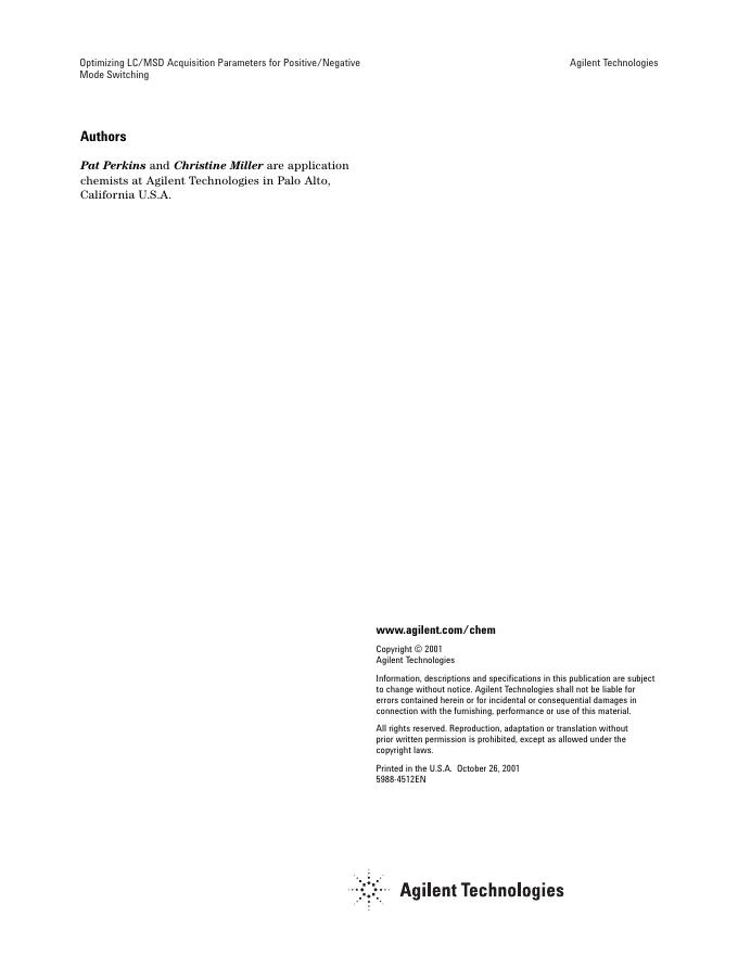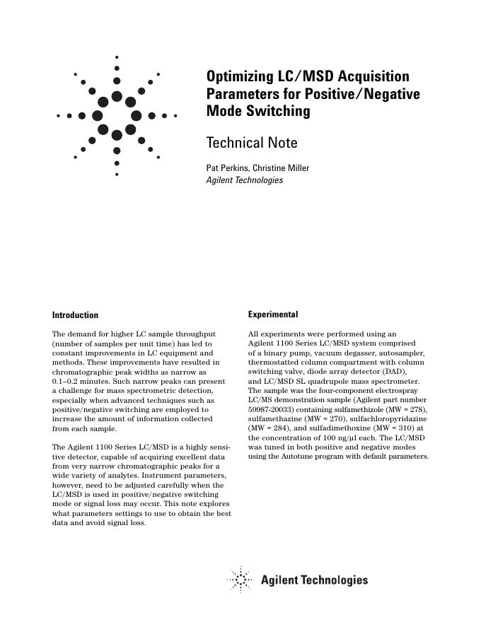Agilent Technologies Optimizing LC/MSD Acquisition Parameters for Positive/Negative Mode Switching 技术手册.pdf