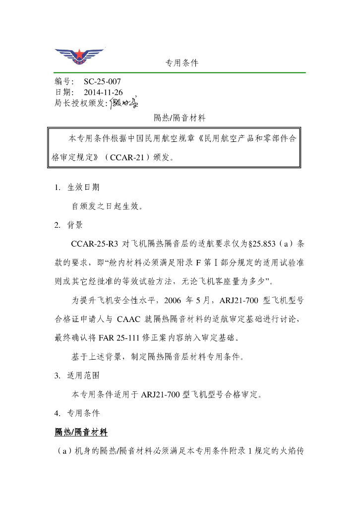 ARJ21-700 型飞机《隔热/隔音材料》专用条件.pdf