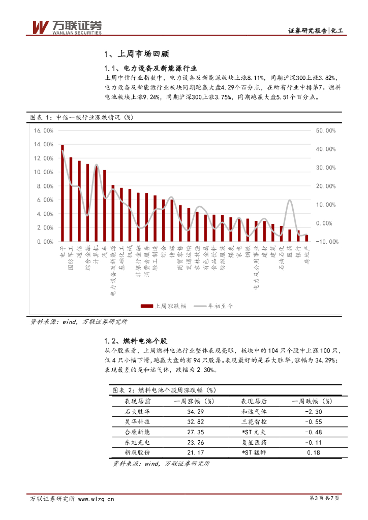 万联证券:燃料电池行业周观点:燃料电池板块活跃、可再生能源制氢备受瞩目.pdf