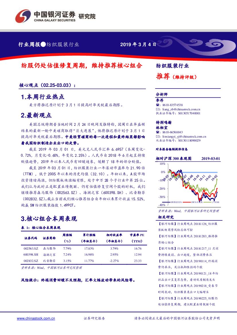 中国银河:纺织服装行业周报:纺服仍处估值修复周期,维持推荐核心组合.pdf