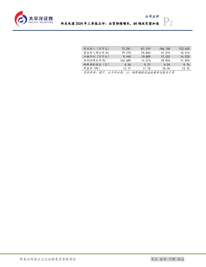 太平洋证券:阳光电源2024年三季报点评:出货持续增长,Q4确收有望加速.pdf