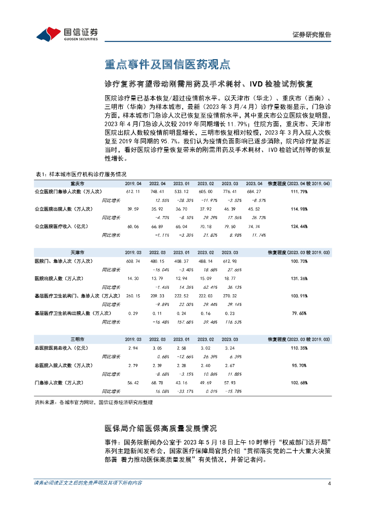国信证券:医药生物周报(23年第20周):诊疗复苏正当时,样本城市医院诊疗量已基本恢复/超过疫情前水平.pdf