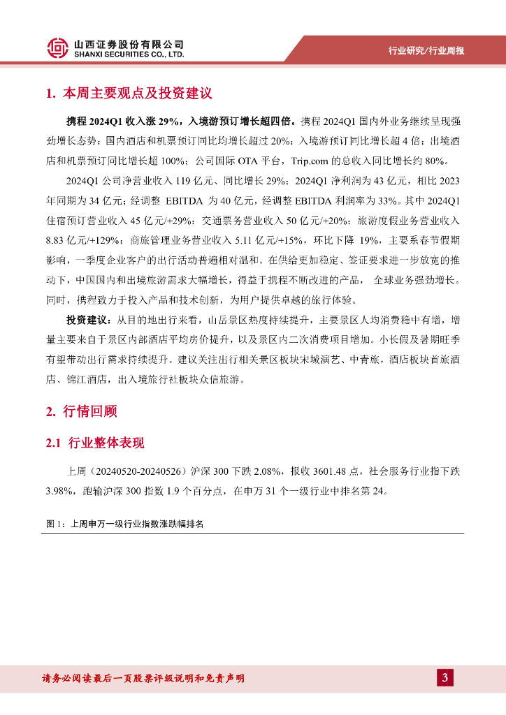 山西证券:消费者服务行业周报:携程2024Q1收入涨29%,入境游预订增长超四倍.pdf