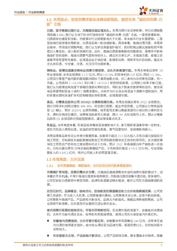 天风证券:食品饮料行业研究周报:创造的需求板块业绩或超预期,提前布局“递延的消费-白酒”主线.pdf
