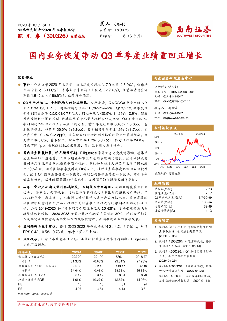 西南证券:凯利泰(300326)-国内业务恢复带动Q3单季度业绩重回正增长.pdf