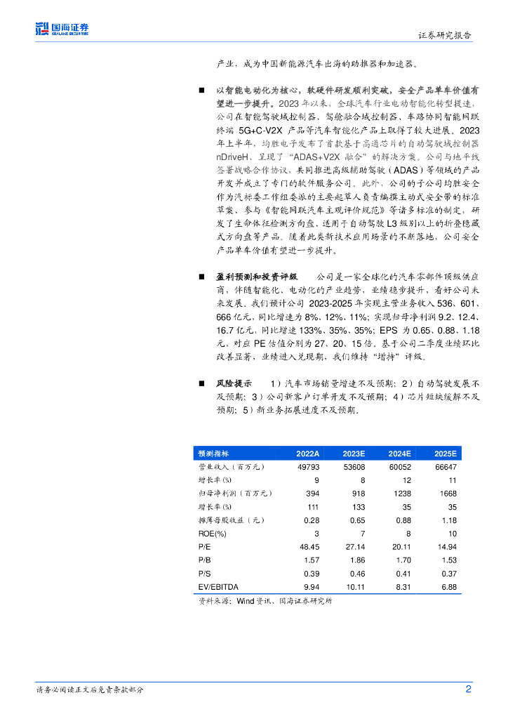 国海证券:均胜电子(600699)-2023中报点评报告:盈利能力持续修复,汽车电子业务快速发展.pdf