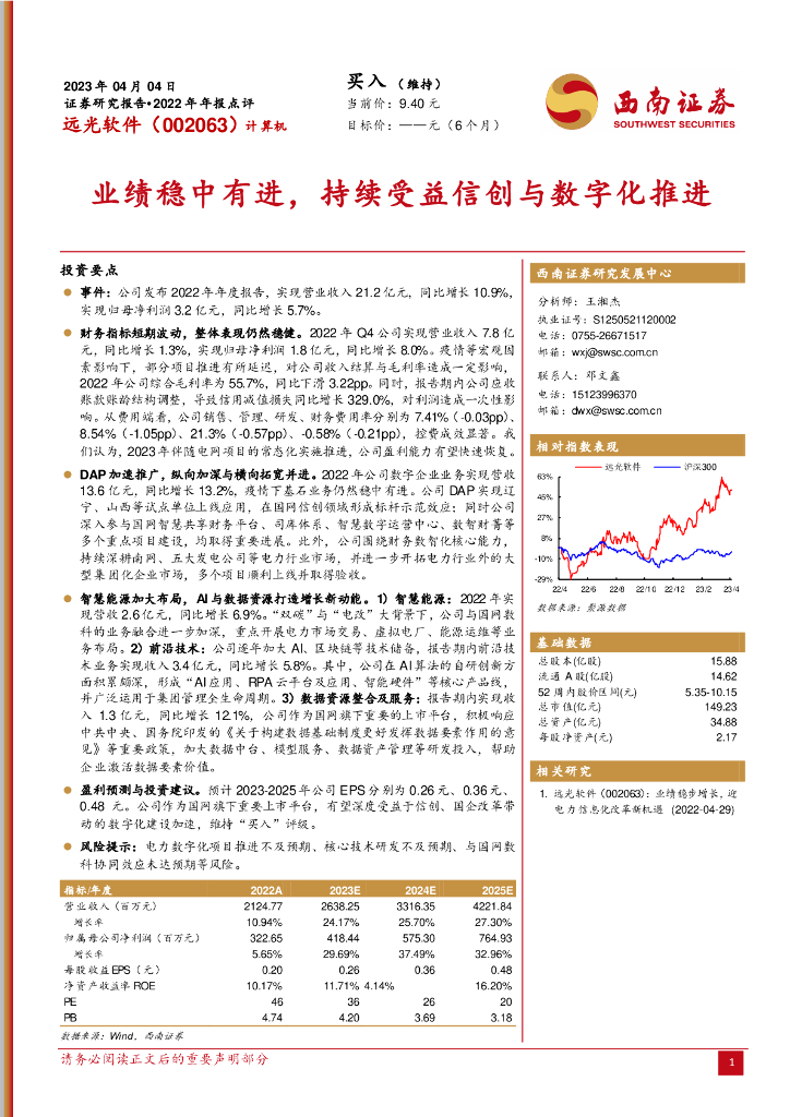 西南证券:远光软件(002063)-业绩稳中有进,持续受益信创与数字化推进.pdf