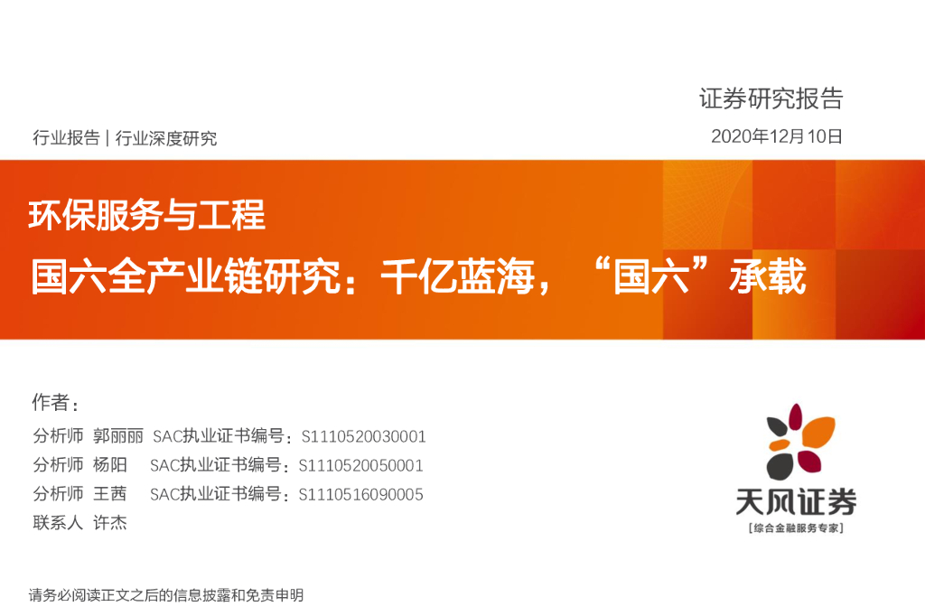 天风证券:环保服务与工程行业深度研究:国六全产业链研究:千亿蓝海,“国六”承载.pdf