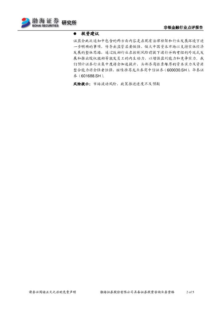 渤海证券:证券行业点评报告:关注监管支持行业“内外”双轮发展下券商机会.pdf