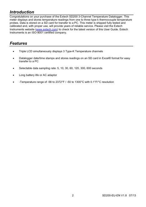 Extech SD200 3通道温度数据记录仪用户手册.pdf