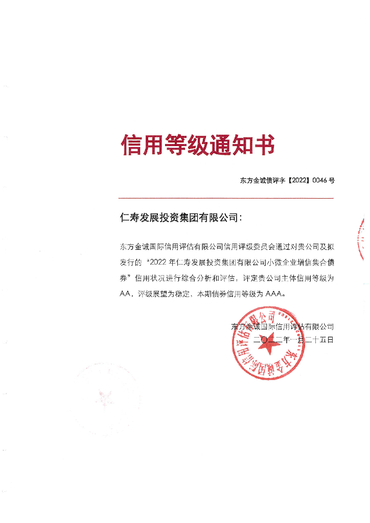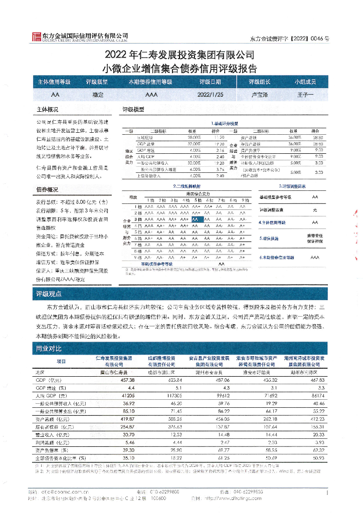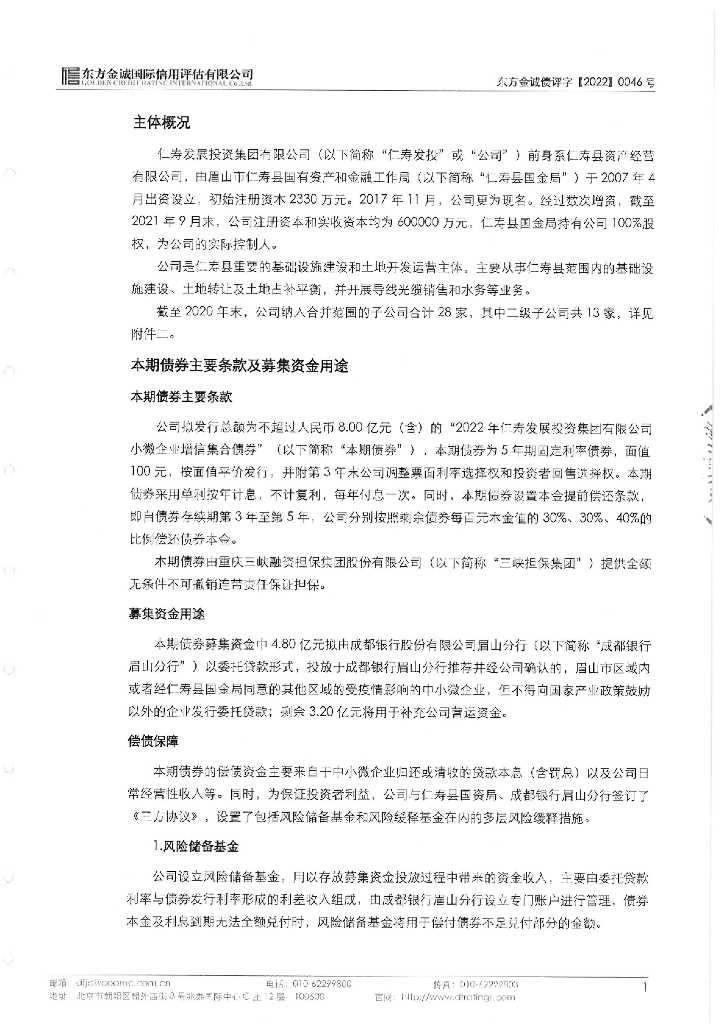 东方金诚:2022年仁寿发展投资集团有限公司小微企业增信集合债券信用评级报告.pdf