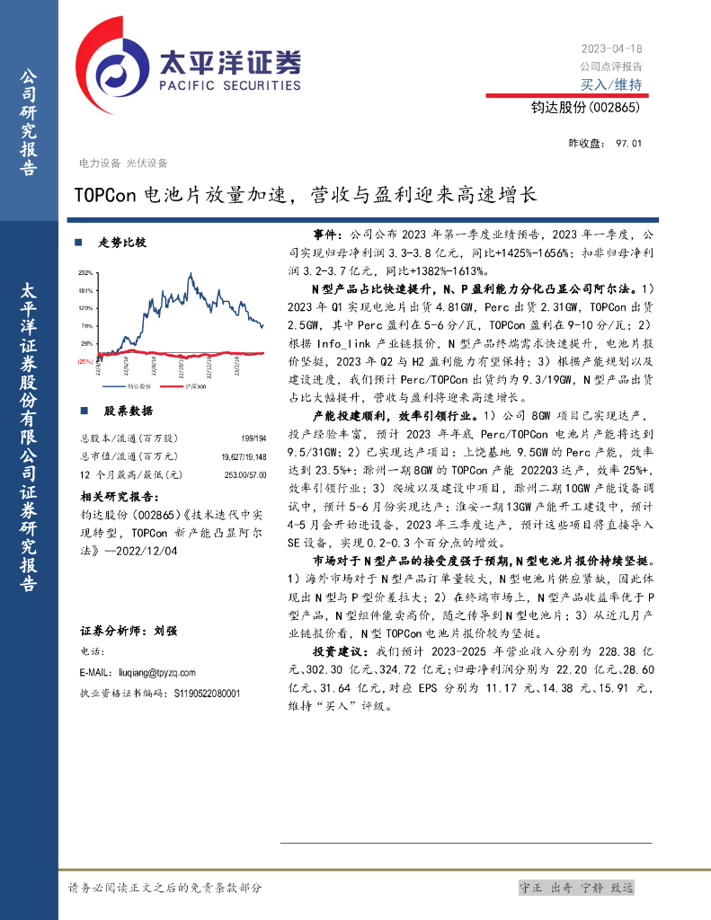 太平洋证券:钧达股份(002865)-TOPCon电池片放量加速,营收与盈利迎来高速增长.pdf