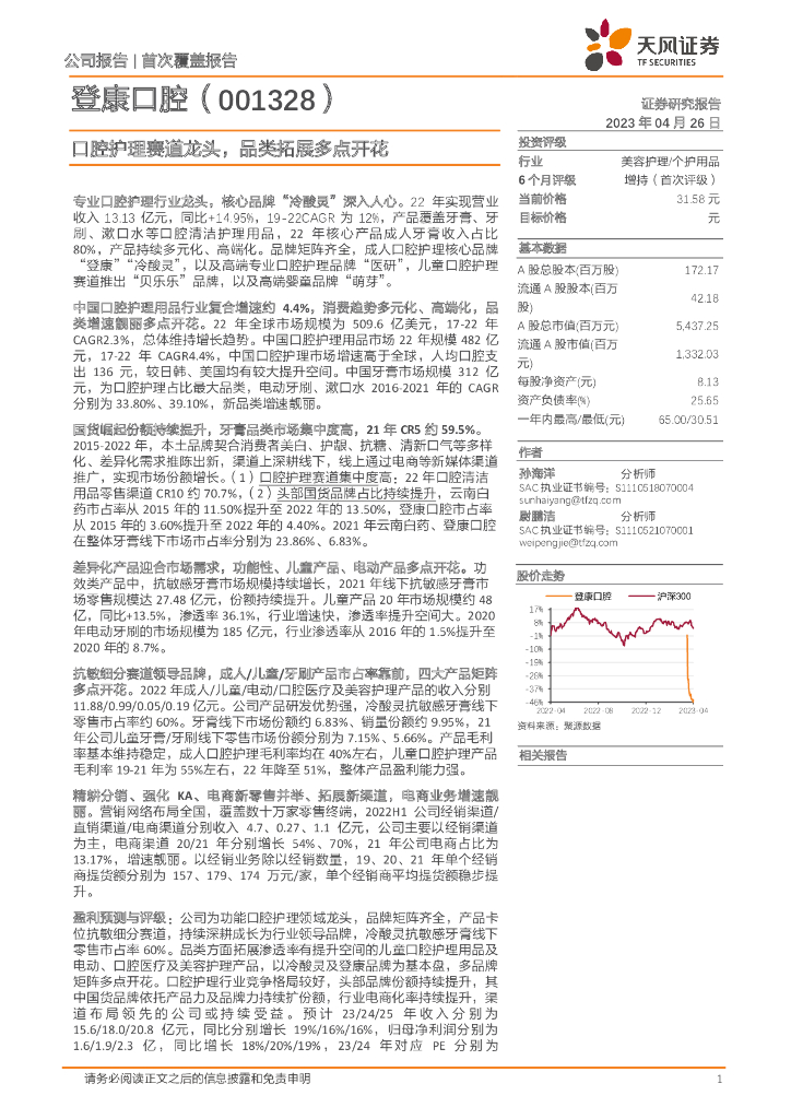 天风证券:登康口腔(001328)-口腔护理赛道龙头,品类拓展多点开花.pdf