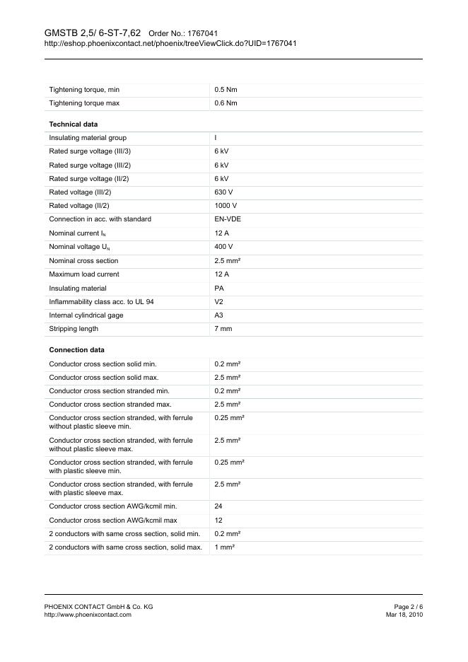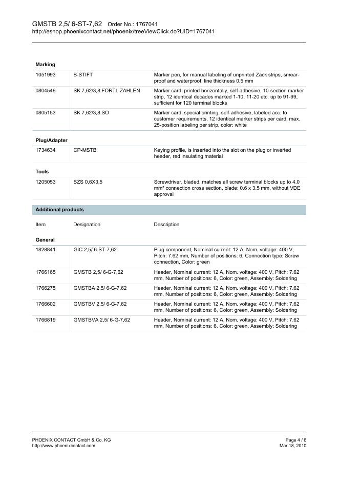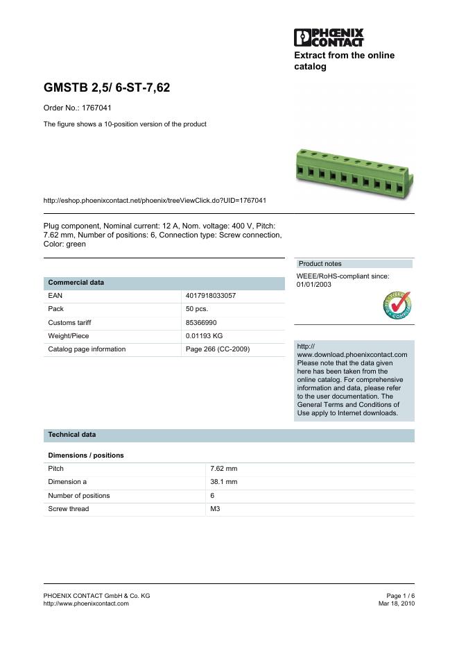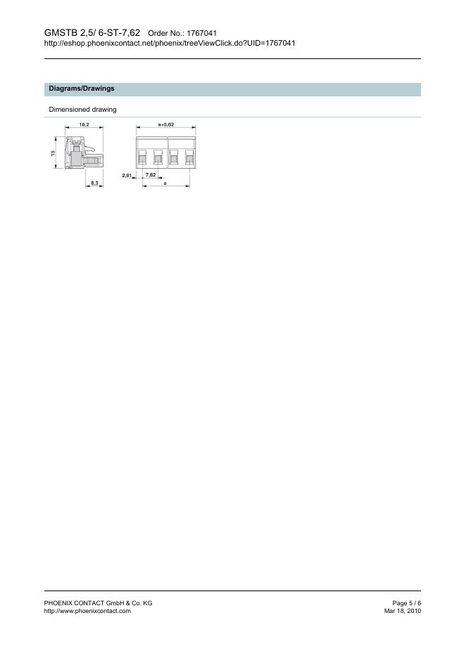 PHOENIX CONTACT - GMSTB 2,5/ 6-ST-7,62 Order No.: 1767041 The figure shows a 10-position version of the product 数据手册.pdf