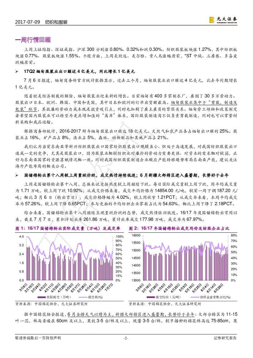 光大证券:纺织和服装行业周报:17Q2缅甸服装业出口近4亿美元,新疆棉区进入盛蕾期长势好.pdf
